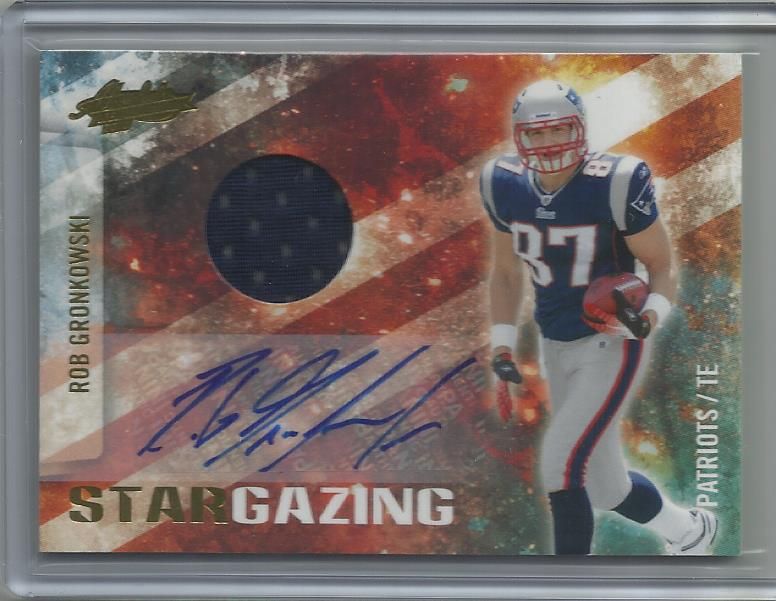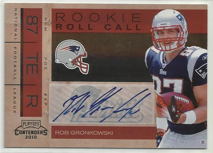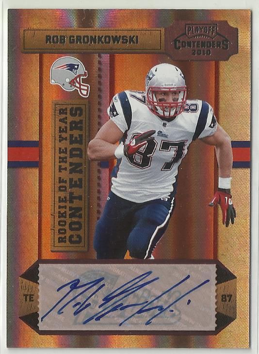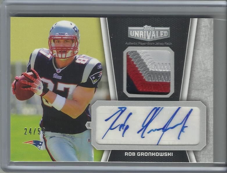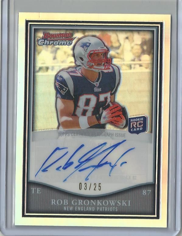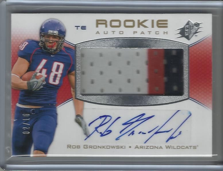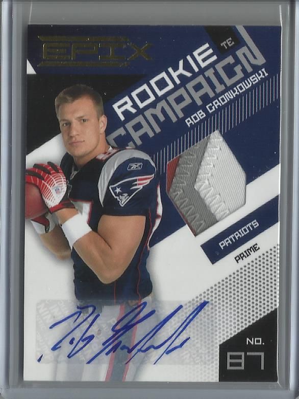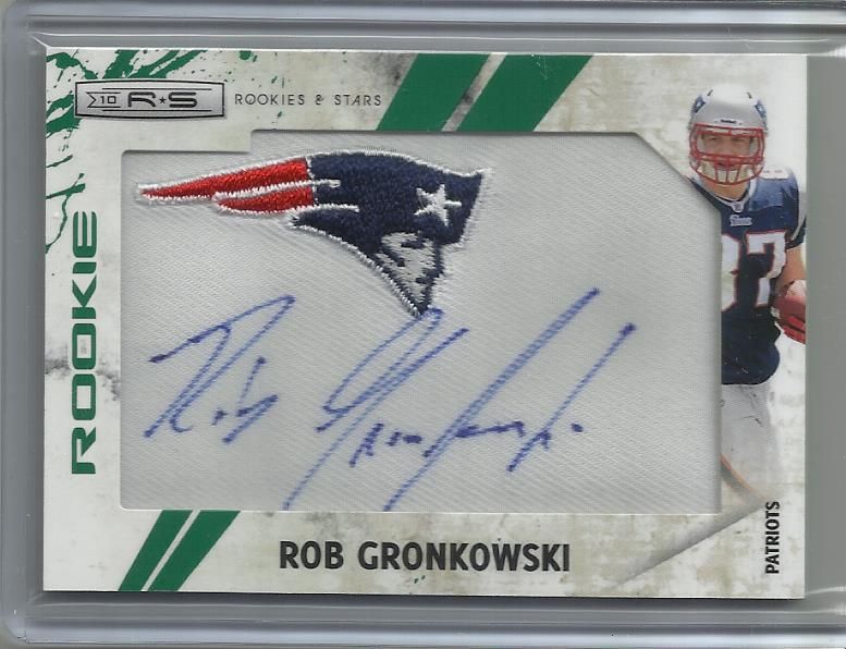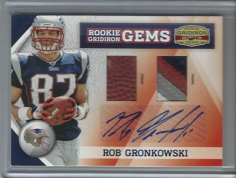 Probably one of my least favorite of the bunch....scan doesn't help much either. The whole concept is a bad idea in my opinion. 2010 SP Authentic Super Jersey Auto /25 ![]() 2010 Topps Unrivaled Black Patch Auto /50 ![]() 2010 Epix Patch Auto /25 ![]() 2010 Finest Refractor Patch Auto /99 ![]() NOW FOR THE GOOD STUFF! ![]() For some reason this card is really hard to find 2010 Bowman Sterling Black Refractor Auto 50/50 ![]() Been wanting this card for a VERY long time! 2010 Bowman Chrome Rookie Preview Auto /25 ![]() 2010 Gridiron Gear Patch Auto /15 ![]() Another card ive been drooling over for a long time 2010 Topps Five Star Quotable Auto /15 ![]() 2010 Panini Threads Rookie Signatures Auto /10 ![]() 2010 Contenders Rookie Roll Call Auto 10/10 ![]() 2010 Contenders Rookie Of the Year Auto 10/10 ![]() Now the only card I am missing from the 2010 Contenders set for Gronkowski is his Draft Class dual auto with Hernandez /10 Anyone have it?? 2010 SPx Rookie Patch Auto /10 ![]() 2010 Rookie and Stars Emerald Auto /5 ![]() And last...but certainly not least... 2010 Plates and Patches Rookie Prime Signatures Football Auto 2/2 ![]() Hope you enjoyed!!! As always if you have Gronk stuff let me know...I might still need it. Im at about 380 of 560 from his rookie year. 2011-2013 im only missing a handful but feel free to let me know what you got.
