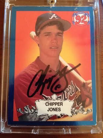 Mine is this chipper Jones Rookie card i got signed at an IP event a couple of years back. Cam out great! Thanks for the contest!