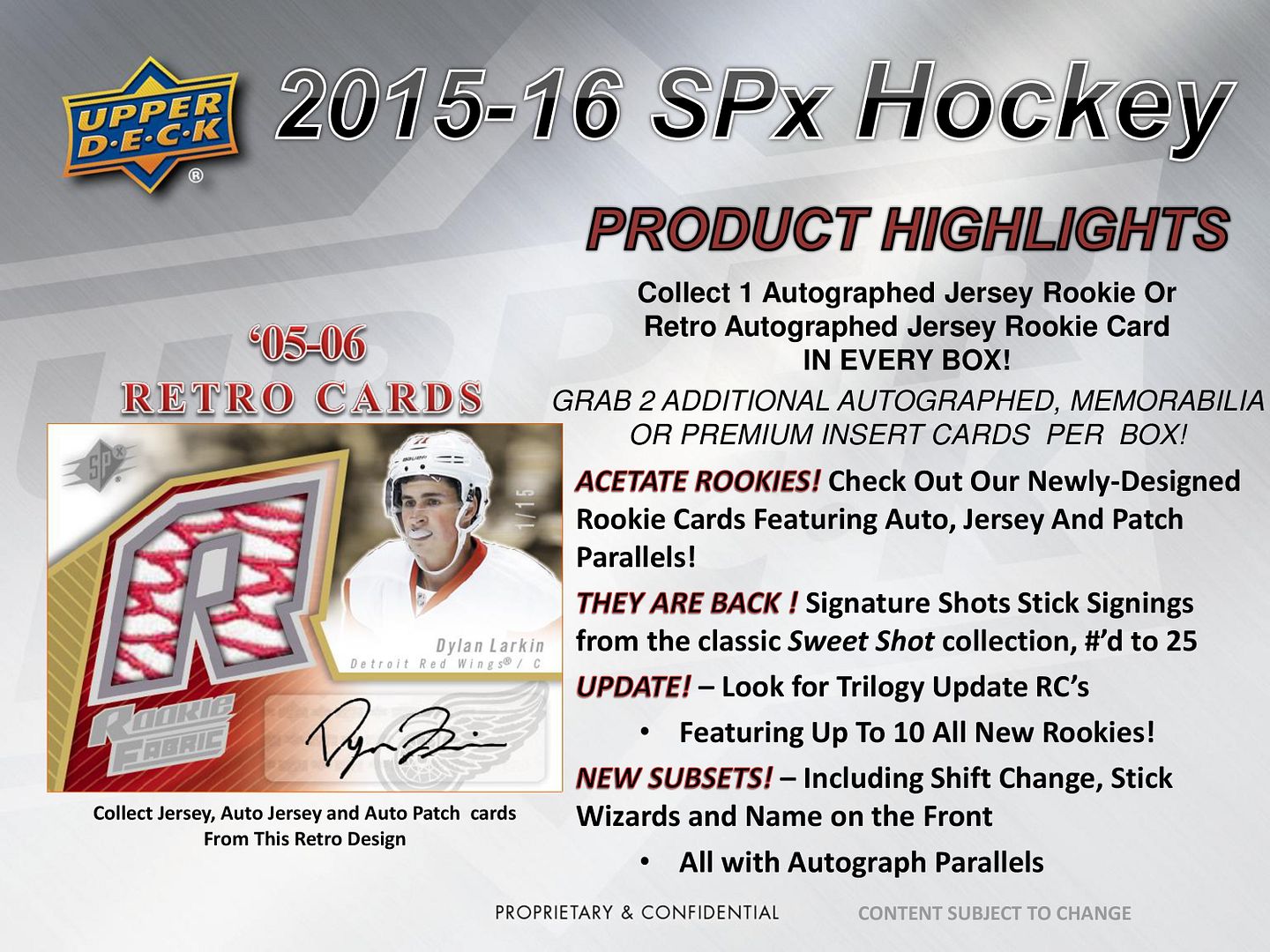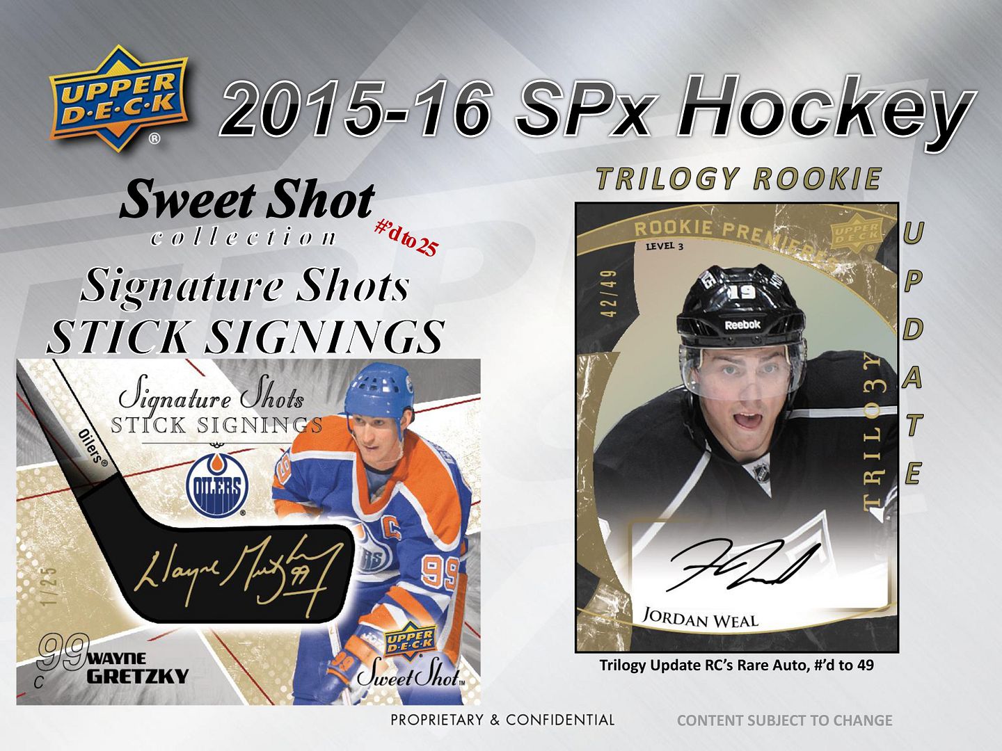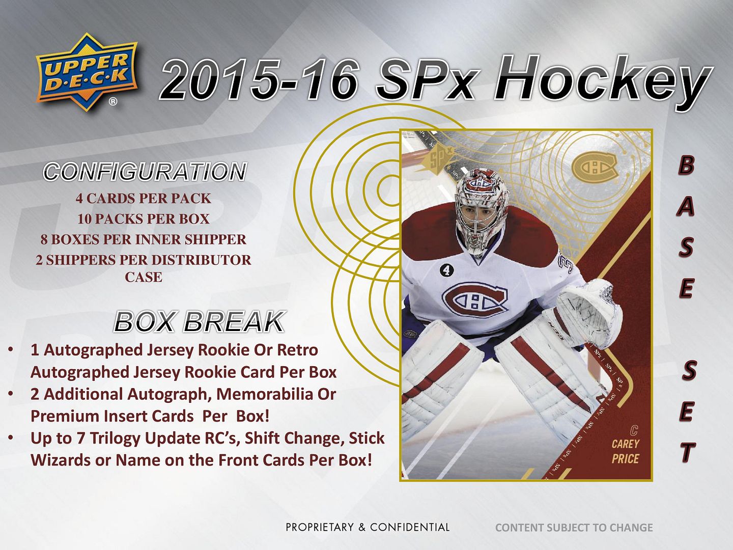 Below you will find the most up-to-date product information available. Our goal is to compile as much information within this THREAD regarding this product as possible. Throughout the Pre-sell process, we will update this thread with any content changes, videos/images, or any other manufacturer announcements that are made before the product is released. Once the product comes live, this thread will also be a great resource for break and content information. Please click the links below to purchase this product by the Box or Case CASE 2015/16 Upper Deck SPx Hockey Hobby 8 Box Case BOX 2015/16 Upper Deck SPx Hockey Hobby Box 2015/16 Upper Deck SPx Hockey ![]() ![]() ![]() ![]() ![]() |