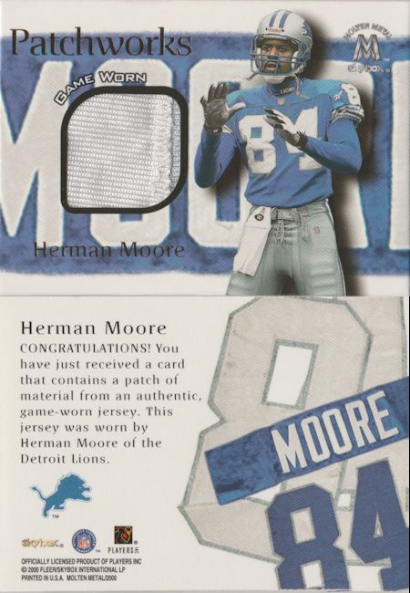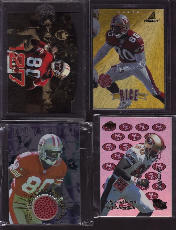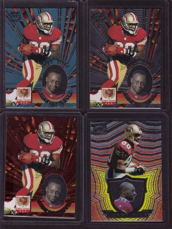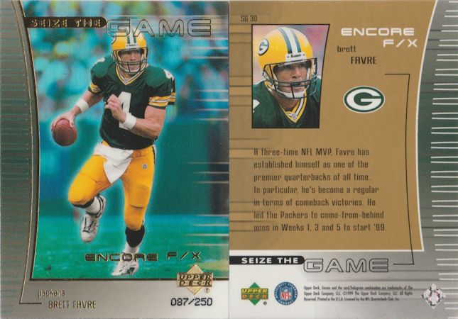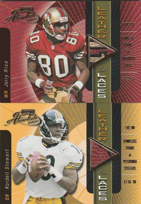 ![]() 1999 Stadium Club Chrome First Day Jerry Rice /100 ![]() 2000 Absolute Rice and Stewart ![]() Remember the Face Mask cards from 2002? ![]() 1999 UD Encore Seize the Game Brett Favre /250 ![]() Molten Metal Patchworks Herman Moore |