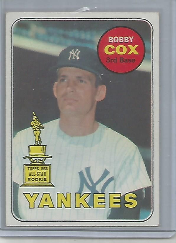 This one was issued as a redemption, and to my knowledge there are only 25 copies (no base version). It fills a need in both my quest for Five Star autos, and the 3,000 Hit club autos. He's also a HOFer to boot! ![]() Randy Johnson Bobblehead- This is a place holder (it was $2) for a better bobble. But it covers 3,000 K Club, 300 W Club, Perfect Game Pitchers Club- and he's a HOFer! ![]() Brooks Robinson Bobblehead- One of my favorite players because it was my Paw's favorite. Pretty excited to get this bobble, and he's a HOFer of course! ![]() 1969 Topps Bobby Cox RC- Not only does it cover a requirement in my HOF RC needs, but also more importantly in my '95 WS Braves RCs! It's the last one I needed! ![]() 1933 Goudey Frank Frisch- My first '33 Goudey for that set (hahaha) and a HOFer! ![]() 1933 Goudey Jim Bottomley- My second '33 Goudey for my set (no seriously ha) and another HOFer! ![]()
