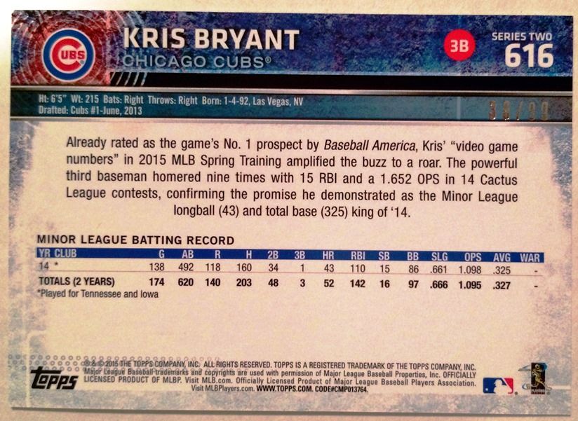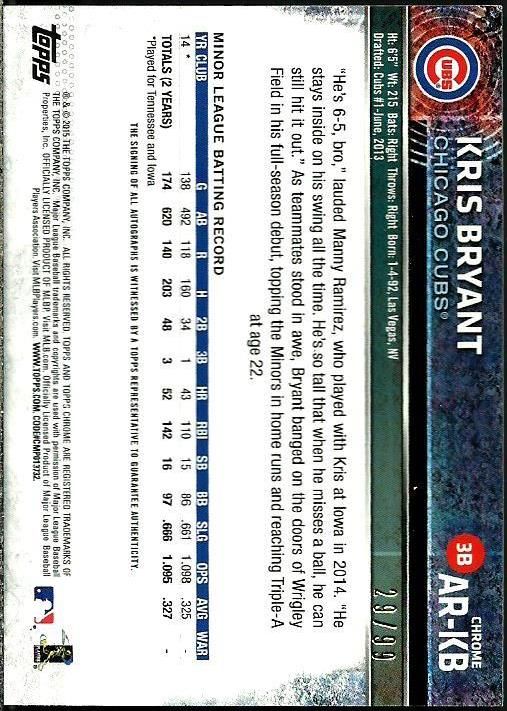Here are a few of mine. All were pulled from packs except for the green chrome, which I traded for. I sold the 14 Bryant auto, but pulled a second one that I haven't graded yet.