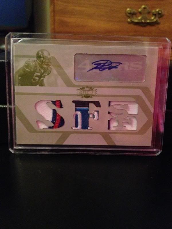 2012 Topps Five Star Octo Patch FSOP-6 Ray Lewis-Brian Urlacher-A.J. Hawk-Jason Witten-Patrick Willis-Jimmy Graham-Tony Gonzalez-Rob Gronkowski 3/5 ![]() 2012 Topps Supreme Eight-Piece Relic Red #SEPR-6 Patrick Willis-Brian Urlacher-Ray Lewis-A.J. Hawk-Tony Gonzalez-Jimmy Graham-Jason Witten-Rob Gronkowski 1/1 ![]() Anytime you can beat Cowboys and Packers fans to a card it feels like a victory.