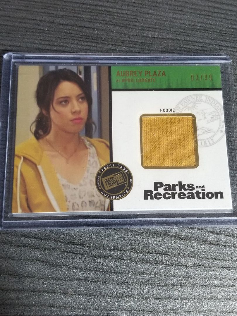 adam scott shirt #ed 9/25 R-AS...................$10 aubrey plaza hoodie/shirt #ed 32/99 RD-AP2..................$25 Thanks!