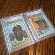 1987-88 I was 9 or 10 my dad would take me to card shows. He absolutely hated sports, but would give me my spending money at the door and patiently walk table to table with me till I was done. The biggest show of the year was 75 miles away, he took me ,and on that trip he told me his dad took him to see the Braves/Dodgers play in the early 60's and Hank Aaron was a giant walking the earth, he was just amazing to watch in person. That surprised me, showing some love of sports! (You'd had to known him lol)....Get to show and at the first table was a 1964 Hank Aaron in a case, we looked at each other and smiled, so ironic!!, he stepped up, talked the guy down of course, and bought it and handed it to me. That card trumped all my Dale Murphy base cards I bought that day with my allowance money for my growing 1988 PC , I starred at it all the way home and couldn't believe I owned it. It's the untouchable card in my collection, it will go with me. It also taught me a lesson for my own kids, they don't have to love my interests, but I can sure support theirs!!.... He passed away in 2017, I recently sent the 64 Aaron from that day to PSA to get slabbed and protected, and I still add Hanks to it from time to time to keep it company. ![]()
