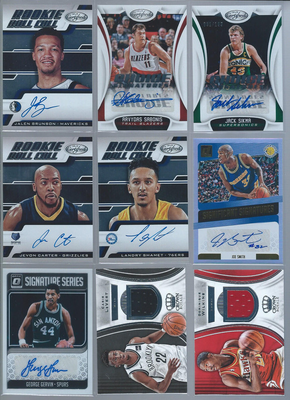 5 Cards for $20 Shipping $3 for any purchase under $20. All packages will ship in new bubble mailers with tracking. Paypal only, comment in the thread to claim. First come first served in the thread. Please comment with the cards you would like (EX: 1. Lever, 14. Davis, 39. Sexton) each card has its own number from 1-72, don't just use the last name as some players have multiple cards and may appear in multiple scans. Please take a look at the cards, there is minor chipping and the like as is common with the thicker cards. ![]() 1. Lever SOLD 2. Augmon SOLD 3. Hart SOLD 4. Holiday 5. Brown JR SOLD 6. Harris SOLD 7. Rambis SOLD 8. Jackson SOLD 9. Bacon ![]() 10. Evans 11. Brown 12. Hervey 13. Bowen SOLD 14. Davis SOLD 15. Collins SOLD 16. Cartwright SOLD 17. Leonard SOLD 18. Jackson ![]() 19. World B Free SOLD 20. Holiday 21. Scott 22. Guy SOLD 23. Mahorn 24. Curry 25. Roby SOLD 26. Musa 27. Young SOLD ![]() 28. Brunson SOLD 29. Sabonis SOLD 30. Sikma SOLD 31. Carter 32. Shamet 33. Smith 34. Gervin SOLD 35. Levert 36. Wilkins SOLD ![]() 37. Patton 38. Markkanen 39. Sexton SOLD 40. Walker IV 41. Nurkic 42. Stephenson SOLD 43. Murray SOLD 44. Paul 45. Carter/Bagley III SOLD ![]() 46. Gobert 47. Labissiere 48. Parsons 49. Hield 50. Payton 51. McCollum 52. Hill SOLD 53. Middleton SOLD 54. Gilgeous-Alexander/Robinson SOLD ![]() 55. Spellman 56. Trent JR 1 57. Trent JR 2 58. Bagley III 59. Brown 60. Bamba 61. Herro SOLD 62. DiVincenzo SOLD 63. Wall SOLD ![]() 64. Washington JR 65. Williams 66. Gordon 67. Doncic SOLD 68. Thybulle 69. Herro 70. Murray SOLD 71. Irving 72. Leonard SOLD Thank you for taking a look. Frank