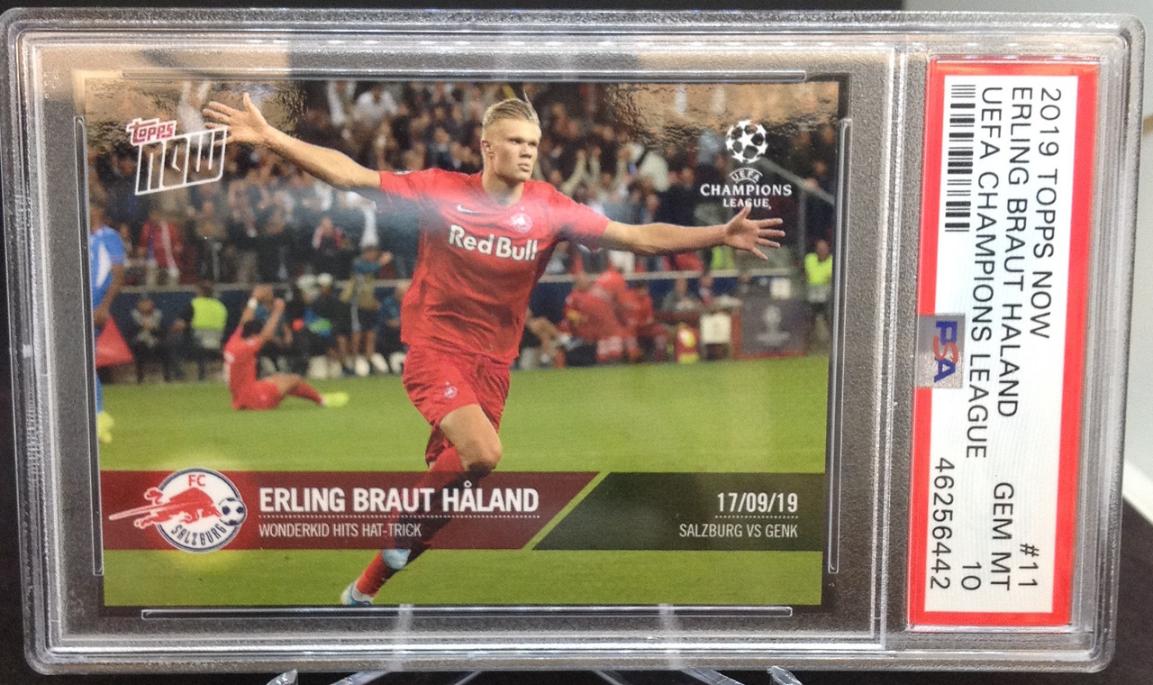 (September 17th, 2019...Available for EVERYONE in the world to buy on September 18th, 2019. Topps would have sold an unlimited amount of these if people were paying attention) ![]() Just look at what that moment captures: From the bold "Red Bull" on his chest, (would be a cool nickname), teammates celebrating in the background, opponent distraught, Haaland's arms out wide letting the world know, "I've arrived!!!". Can someone show me a more significant card than this and tell me why? |