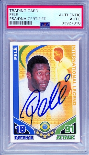 I already have a couple of these Pele Match Attax cards in my collection: But I finally decided to pickup a signed copy: ![]() Got a deal on it due to a crack in the slab and a slightly faded auto - planning on sending it in to have the slab and older style flip replaced at some point.