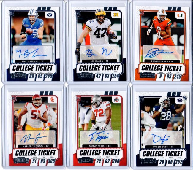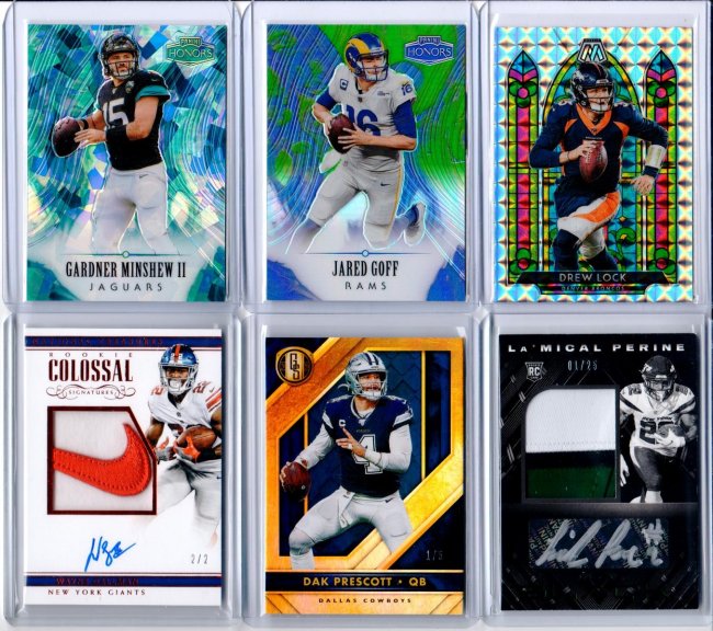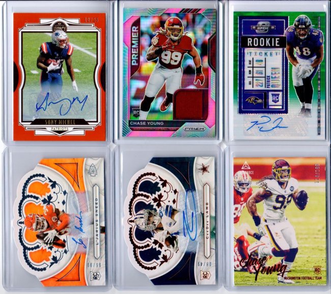 2. Cards will ship out in toploaders, bubble mailers and with tracking (and insurance on higher end deals) 3. $6 minimum purchase please..... HOWEVER if it falls under $5.99, then I can ship them in PWE, if you are willing to accept on your own risk! 4. If you PM me, please BUMP MY THREAD as well....thanks!!!! ![]() Tuipulotu 29/100 $1 Davis Mills Diamond Premium Edition Mini 9/10 $50 Smith 144/199 $1 Lenoir Auto $8 ![]() Bushman $4 Mason $6 Jordan $4 Tuipulotu $4 Togiai $10 Oweh $10 ![]() ![]() Powell 5/75 $10 Moore 26/75 $20 Franks 39/40 $10 Toney 1/30 $26 Oweh 23/30 $10 Jordan 13/25 $15 ![]() Michel 12/25 $25 Young Prizm Premier Relic $10 Queen Auto 18/27 $35 Sneed Auto 96/99 $13 Lamb Auto 8/49 $65 Young Chronicles Luminance RC 114/199 $4 ![]() Tua Tri Color RC #45 $20 Collins Auto $8 Skowronek Auto $3 XRC RB2 #407 $100 Randy Moss Zenith 40/50 $8 CEH The Rookies 11/25 $100 ![]() Bowden 20/80 $10 Gibson 38/75 $22 Sanders 5/25 $25 Dillon Limited RPA 90/199 $30 Moss NT 10/10 $150 Moss Contenders 8/10 $400 ![]() LT 5/49 $13 Sanders 67/99 $7 Young RC 59/149 $18 Dobbins RC 119/149 $10 Hurts RC 59/199 $52 Jeudy RC 112/199 $20 ![]() Ruggs III RC 3/5 $200 Ruggs III RC 4/7 $150 ----------------------------------------------------------------------just added on June 18 2021 --------------------------------------------- ![]() Claypool / McFarland 9/15 $55 McFarland 21/99 SOLD Dobbins Patch 3/25 $20 Reagor 18/75 (Jersey #) $25 Hurts 152/199 $145 Golladay 10/35 $22 ![]() Aiyuk 8/25 $135 Kearse 20/25 $20 Witten 7/7 $30 Love 113/149 SOLD Rodgers 71/175 SOLD Rodgers 25/25 $125 ![]() Minshew 14/15 $10 Goff 9/25 $5 Lock $35 Gallman $300 Dak 1/5 $25 Perine 1/25 $60 ![]() Dillon 4/10 $100 Flacco RC 12/25 $180 Flacco / Rice SP Red Ink Dual Auto $50 Flacco / Dexter Jackson / Jerome Simpson $75 ![]() Herbert Gridirons $5 Herbert Select Certified $12 Aiyuk $5 Jeudy Prizm Black Silver Prizm $12 ![]() Moore 17/50 $15 Devonta Smith 38/50 $36 Hubbard 5/30 $10 Herbert 3/30 $5 Campbell 6/99 $8 ![]() Parsons 9/40 $30 Ehlinger 20/20 $20 Buechele 30/40 SOLD Jordan 9/35 SOLD Herbert 19/30 $5 Mond 10/25 $45 Thank you for the look!