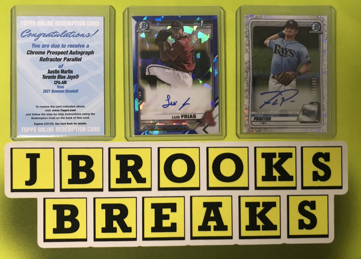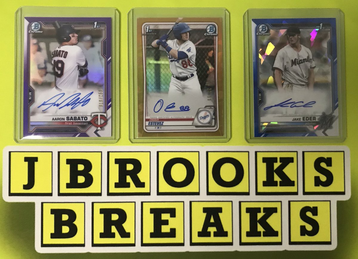 Each break has every box shown - all cards ship. 2020 & 2021 Bowman are both hobby boxes. $57.01 - 2 breaks of 3 boxes each break plus the mega(30 spots each)! This break is scheduled for tonight! Payment instructions: 1. Add your username in the box provided before clicking button. 2. Log in to paypal to use your account normally OR stay logged out to use button as guest & use a credit card. 3. MAKE SURE YOUR ADDRESS IS CORRECT. I absolutely MUST ship to the address attached to your payment from paypal. 4. No refunds or returns, sorry. 5. No echecks. In the event of an echeck, it will have to clear in 3-5 days and then be refunded. Angels Astros Athletics Blue Jays Braves Brewers Cardinals Cubs Diamondbacks Dodgers Giants Indians Mariners Marlins Mets Nationals Orioles Padres Phillies Pirates Rangers Rays Reds Red Sox Rockies Royals Tigers Twins White Sox Yankees |