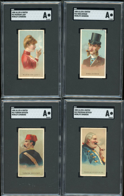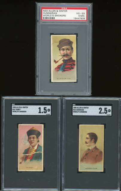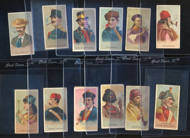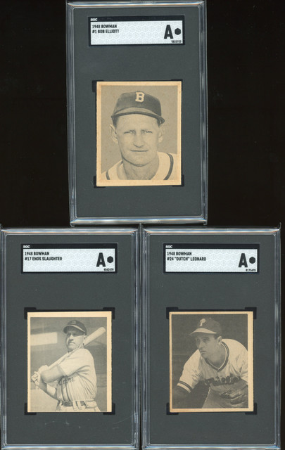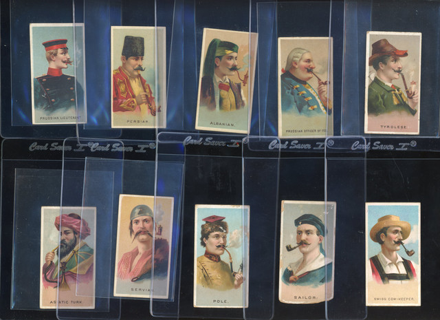 48 Bowman - Leonard Smokers - Hungarian PSA, Russian, Circassian, and Farmer SGC Authentic Smokers - 22 card raw lot** I was able to upgrade these two sets at the National this year. Shipping is $4.50 per card, .50 for each additional card. Free for orders of $100 or more. I am pretty firm on prices for individual cards. I may give a better deal for multiple purchases. ![]() Elliott - $15 Sold Slaughter - $60 Sold Leonard - $15 ![]() Hungarian - $20 Thibet - Sold American - Sold ![]() $10 each. Englishman is SOLD Prussian Officer SOLD Turkish Officer SOLD ![]() $10 each. English Naval Officer SOLD Bedouin Sold ![]() ![]() $250 for the 22 raw cards in the above photos.
