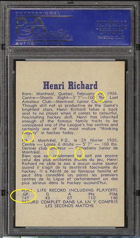 The UR and LR corners on the Henri Richard RC were also sharpened, probably through micro-trimming. That card, btw, is now quite valuable in a PSA 8.5 -- probably about 20k. Many BO members reading this thread may not realize that. It's one of the most popular rookie cards of the 1950s.