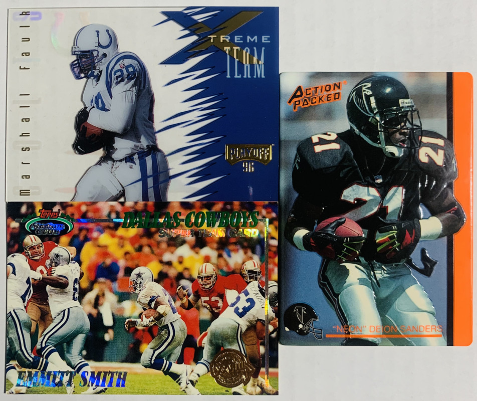 As I understand it, 1991 Pro Set Platinum came in Series 1 and Series 2. In each, there were randomly inserted redemptions for a card made with around a gram of platinum. I believe that the Series 1 redemption was redeemable for a Paul Brown platinum card (hand-numbered /1,500), while the Series 2 redemption was redeemable for Emmitt Smith (hand-numbered /650~!). I read somewhere that the original plan was for there to be 1,000 Emmitts made, but they only ended up making 650. If you have any info to add or corrections to make, please do so! Anyway, here is a ludicrously bad scan of a copy of the Emmitt that I just got in: ![]() I'll have better-looking photos up on IG sometime, so I'll once again encourage you to look into that social media platform if you haven't done so already. 650 copies. In 1991!