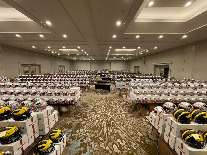 Still haven't seen an estimate of how many items per year per athlete get signed. Here's what Fanatics had Brady sign one day, just in terms of helmets. Looks to be about 2000 helmets in the photo. Probably more elsewhere. Not sure how many other items there were, like footballs and jerseys. Probably thousands more of each. The good news for auto fetishists: There's video of Brady signing some of them. He doesn't look particularly happy or unhappy in the press releases, but Brady is a seasoned pro at posing for cameras, so who knows.