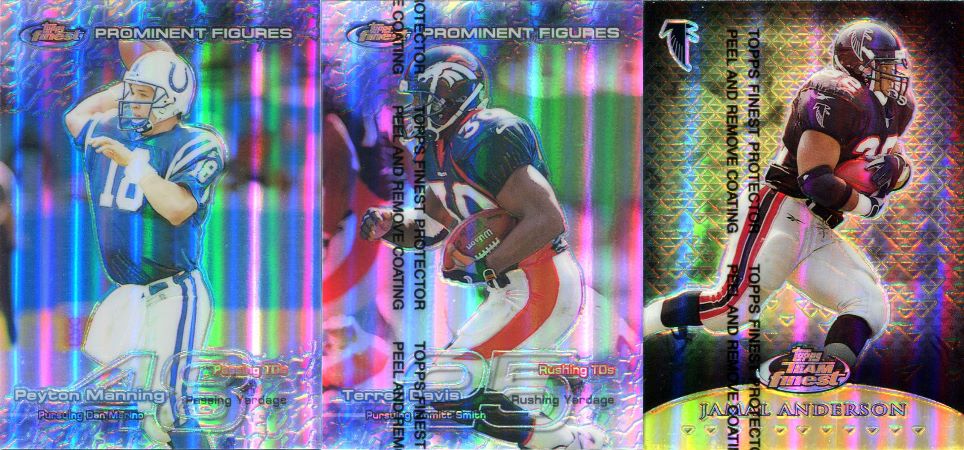 ![]() 1998 Playoff Momentum Hobby Gold /25 ![]() 1998 Playoff Momentum Headliners Gold /19 The Hobby Gold is in the running for my worst scan ever. Lot of competition for that honor. The foil has a really cool pattern, which you can't see AT ALL in the scan. I'll be a broken record and direct you to IG, where I'll be able to do a better job showing it off. As for the Headliners Gold, be aware that there are (gold) versions without the serial-numbering. Don't pay full retail for those.