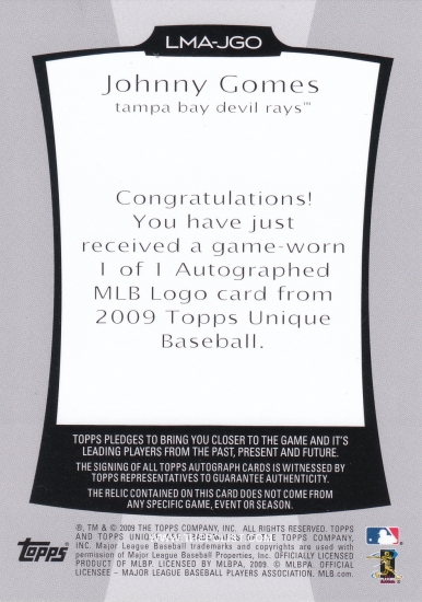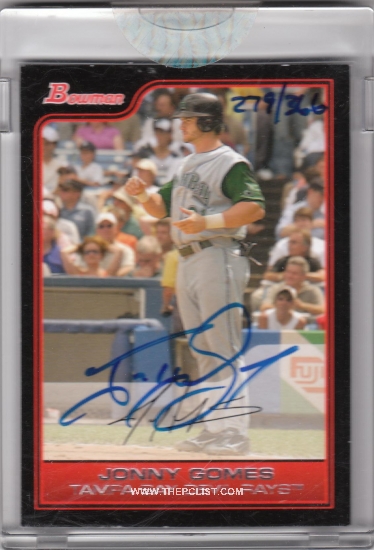 A thread for all things Gomes. Some fun cards are shown below; would love to see what others on here have, too. Fun fact: the second-to-last card below is the 2009 Topps Unique Logo Man Autos 1/1, and is arguably Gomes's best card. But what's wrong with it?