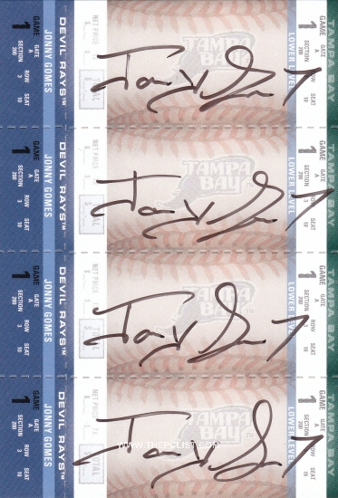 Gomes changed his signature around the time of the 2003 Arizona fall league, so there are a limited number of his 2002 cards with 2002-style signatures on them. Depending on how you count, this leaves me looking for four 2002 Gomes base cards with 2002-style signatures: