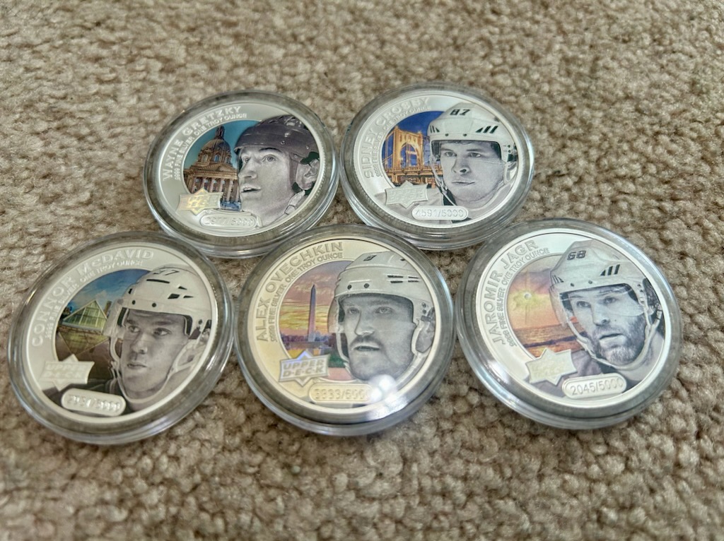 ![]() ![]() Gretzky 50 Ovechkin 45 Crosby 40 Jagr 45 McDavid 45 Shipping per coin is $5. Continental US only.