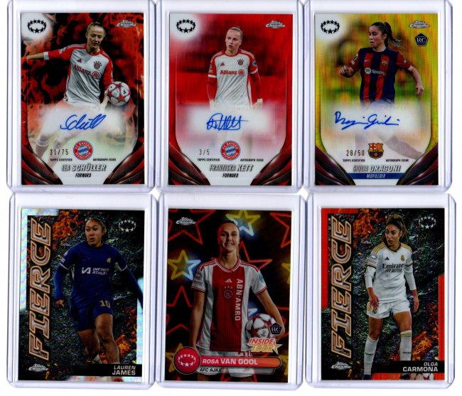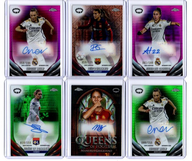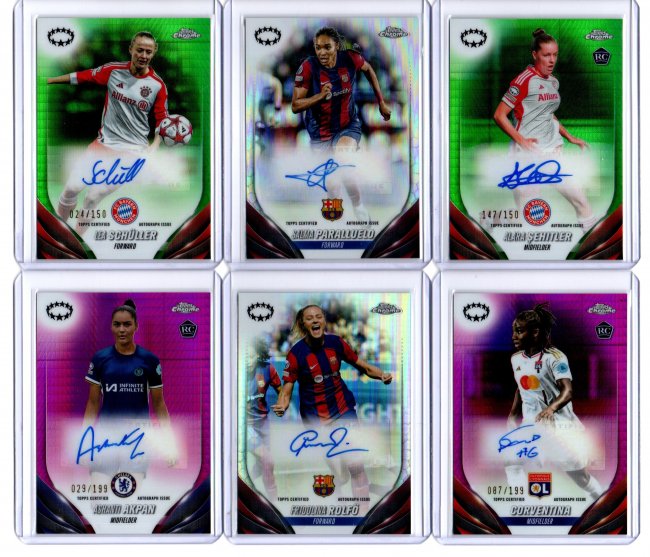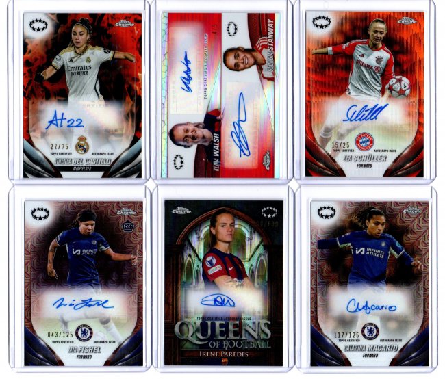 I was in a 3-case break on Saturday. I had Athenea Del Castillo and Olga Carmona and this happened. Superfractor Auto # 1/1, Red Refractor Auto /5 & Gold Refractor auto /50.