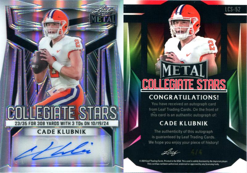 Looks like I was 1 of 4 people to order this 2024 Leaf Collegiate Stars LCS-52 Cade Klubnik, neat!