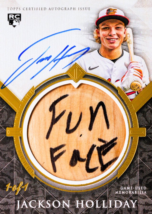 Years ago there was this middling player, and he had a baseball card. It wouldn't have been worth anything except one of his teammates wrote an insult containing the F Word on the bat he was holding in his picture, and no one caught it before it got printed. Oh, okay, that's kind of funny. Then the manufacturers tried to fix it once they realized it, so there were several different variations of the card with different attempts to censor it. Okay. So some versions were more valuable. Yeah, different versions became sought after. It still has some notoriety even though the player never became famous. Okay. So thirty-something years later, the same manufacturer ran a similar gimmick with another player. Nice, was it the first guy's son? No, just another guy on the same team who stood kind of the same way. Oh, gotcha. Except this time, it said Fun Face. Okay. Is the new guy really good or something? He could be. He has a lot of potential even though he was awful last year. Oh, and then they cut the piece of the bat that says Fun Face and put it on a card. Okay. It says Fun Face. It's hilarious. Okay. |