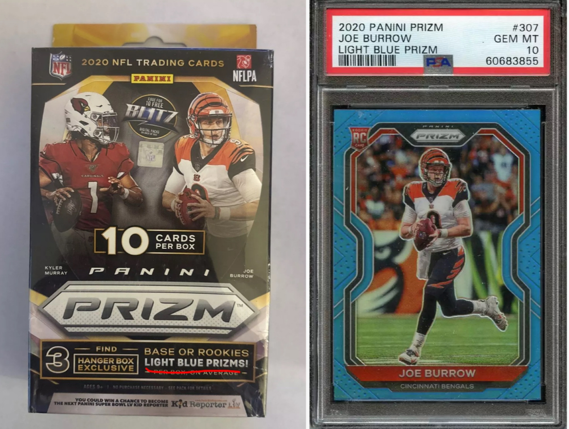 400 cards 2024 Prizm NFL set = 4000 gold /10 and 100 rooks = 9900 purple /99. So, what are the odds for gold or purple? Well, first, not even all of those are in hanger packs (some gold/purple go to hobby boxes, FOTL, international, other higher end and hobby products. Then, how many hanger packs do we think they sell? 5000+ Walmarts with maybe 24 each store = 125k hanger packs in the stores (some stores much more, some less/none). Then figure the Walmart.com online sells what... 5x, 10x, 100x that many more hangers online? That's a ton. Oh, and don't forget that Target and other places have hanger packs 2024 Prizm too. So some of the numbered goes there too. Overall, you're probably looking at odds circa 0.1-1% chance numbered card per hanger at very best (4k gold and 10k purple... probably at least 1M Hanger packs, more likely multi-millions of 2024 hanger packs sold) You aren't usually going to hit one of the <1% numbered in 12 hanger packs, sir. If you do (as guy above says he did a gold), maybe go to the casino... esp if it's anyone of value. ![]() Fat/value 2024 Prizm packs $15 are the much better product this year to consistently hit prizms and RC prizms versus the $25 hanger packs Prizm (unless you love the green wave for some reason?). ![]() ____ Not even close. I would say 1/100, at best. Last edited by slyguy; 02-07-2025 at 03:21 PM. |