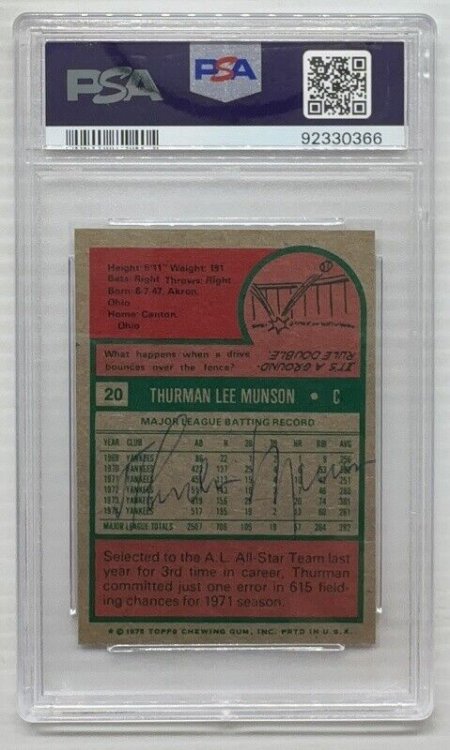 I picked this up in January. Took a while to arrive with new eBay Authentication. Was sitting unopened for about a month until a week ago. I hold on to my pickups and open my card mail on long days when I need a morale boost. The "new pickup" here is realizing on close inspection there is a second, partial, signature!! Munson tried to sign on the front, but the pen didn't work, some streaks so he switched to the back. It wasn't listed as such by the seller. A nice surprise!