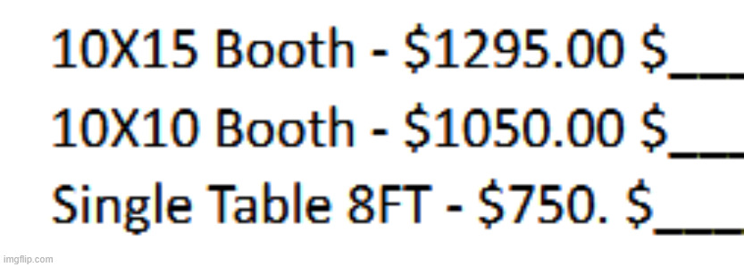 At the price for the middle booth..... honestly I'd be inclined to add my name to the vendor wait list. I was always under the impression it was waaay more than a starting point of around 1000 |
