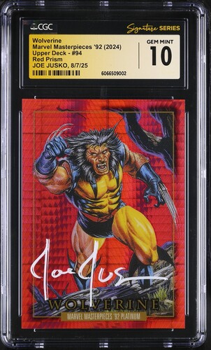 I recently got back a sub of Joe Jusko (Marvel artist) autos…few things hit harder for me than CGC signature series slabs. ![]() ![]() ![]() I am wondering how long I should expect a 12 card sub to be in Grading/Encap/Imaging for. I have a 12 card sub (for the same Jusko signing as above) that I’m waiting on and has been in G/E/I for 2 weeks now. While the above one went into GEI after it, got finished, shipped, and delivered…all while the first one is still in GEI. The reason I ask is because this 12-card sub did go to Quality Check/Finalization a few days ago and now is BACK to GEI. So that seems like it’s making retro-progress. I called CGC today and he kinda thought it looked like a glitch but said this happens sometimes when they are changing around statuses. So who knows. Maybe the quality check turned up something. I will say…I really like CGC’s slabs etc…I have lately found myself giving them more and more of my business- just sent a bulk shipment of nearly 100 cards last month. But I swear basically every single time there is always something going on with my subs, resulting in me calling into customer service and inquiring about things. Whether about some delivery issue, sub status issue, signer issue with sig series…or something. Just never seems to go that smoothly with them. Things do get here in the end though.
