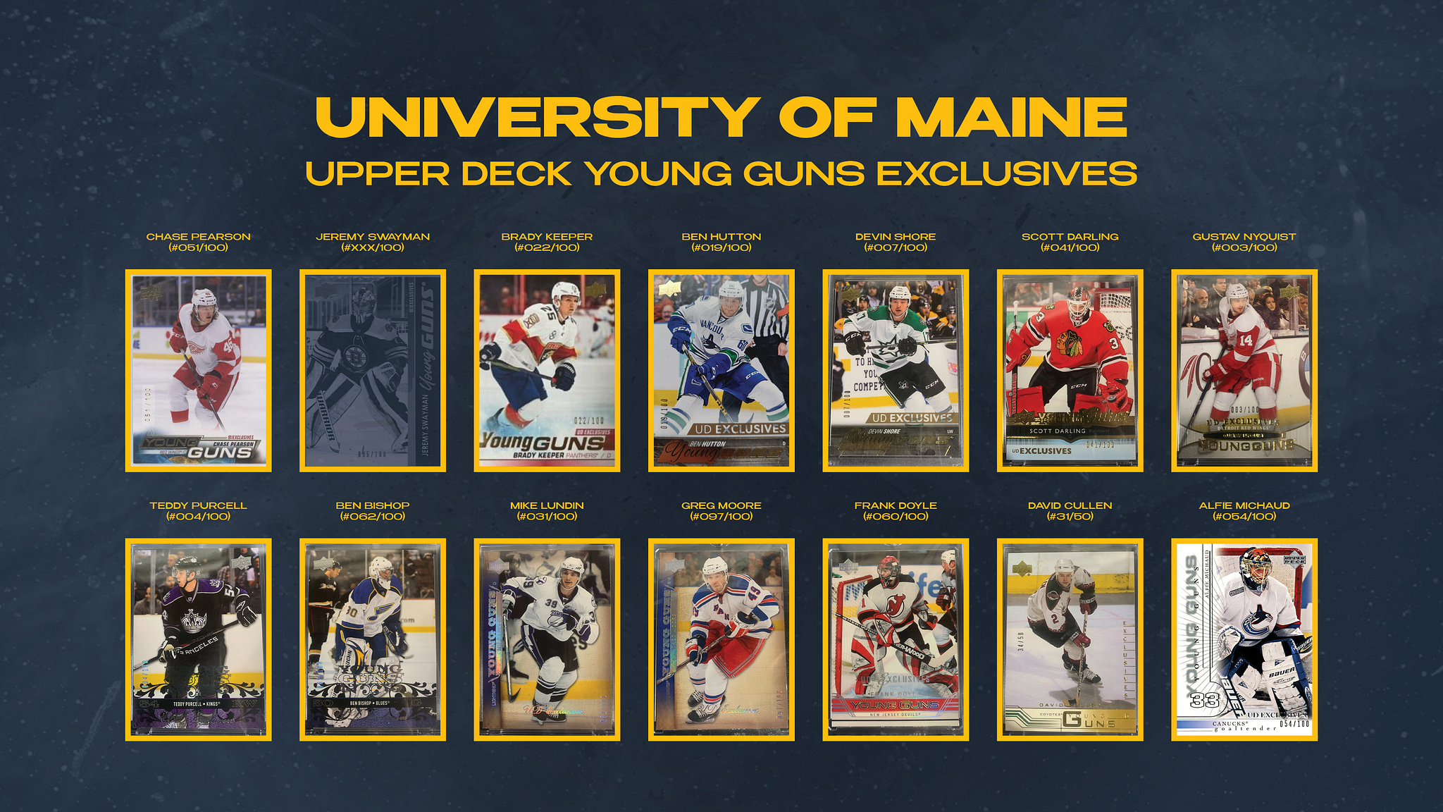 This started as just me hunting down all the Young Guns Exclusives/HG of UMaine players that I could and as I got closer to completing the YG Exclusives I decided to expand my chase to include one of each of their base exclusives as well. All the full color photos are ones I've acquired, faded images are ones I've at least found an image of, and blank are ones that have eluded me completely. Hoping to eventually replace all the photos with nicer scans once I'm closer to completing these other projects. If anyone has any of the cards I'm missing from my chase and want to sell/trade I'd be interested! Would definitely settle for photos at the very least. Some of these are on eBay/comc and I'm sure I'll keep slowly adding them. UMaine - Young Guns Exclusives ![]() UMaine - Young Guns High Gloss ![]() UMaine - Base Canadian Exclusives ![]() UMaine - Base Exclusives ![]() Also before someone points it out: I know the Howard Canadian Fall Expo is currently sitting in for the missing HG (because I don't know if one will ever surface) but I'm content with this one in its place. I'll keep adding to this thread with new additions to these builds and some other one-off UMaine stuff from my PC as I find time to grab photos. |