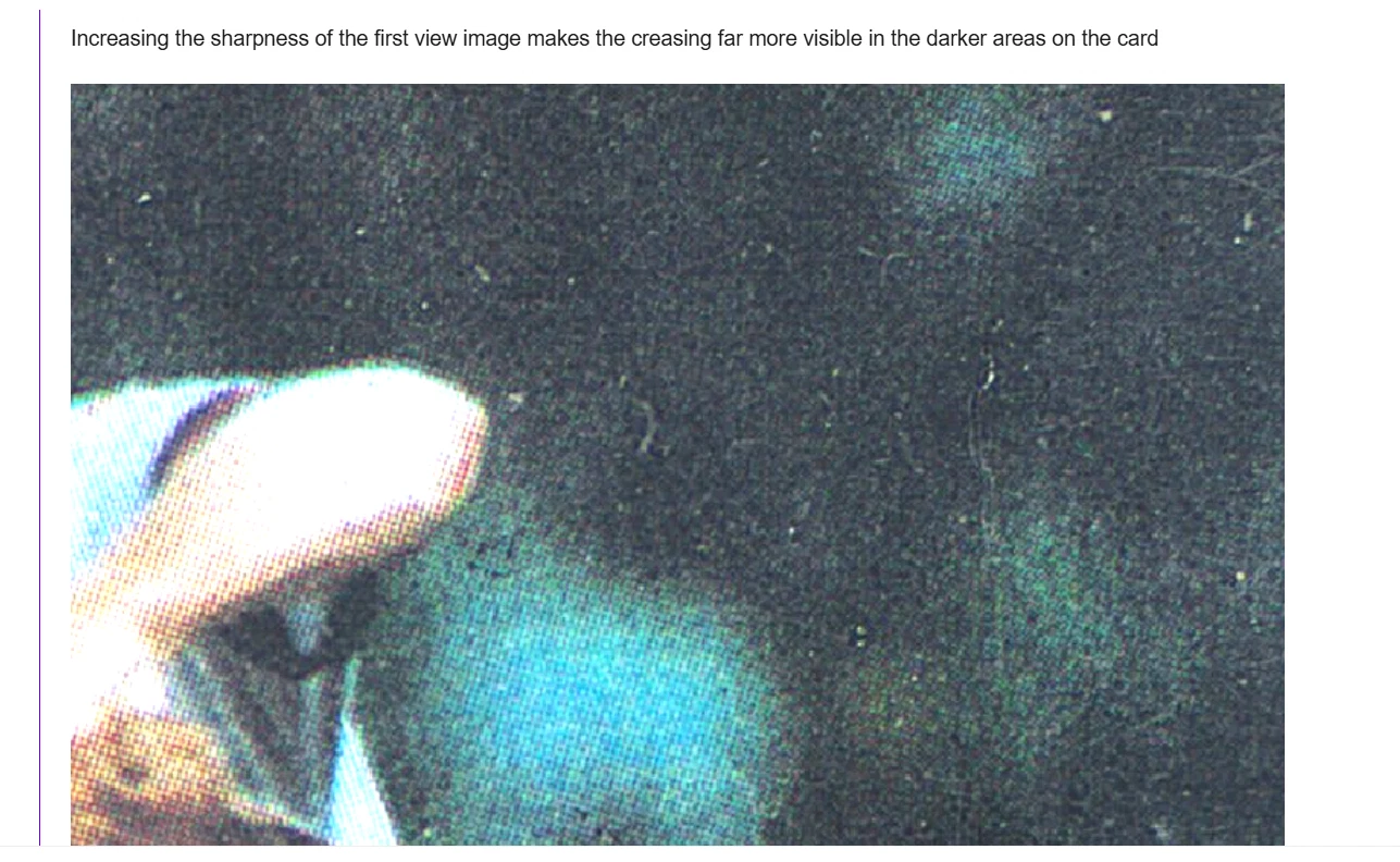 My thoughts... If you truly never had crease at all then something happened before the pre scan. However the reason I think its more apparent is with a crease already there pressure was applied to the card at the sides and then that is where it wanted to crease since small crease there. So it made it much worse. Do they use any machines to move cards along? idk, but if so maybe thats how or done by human. |