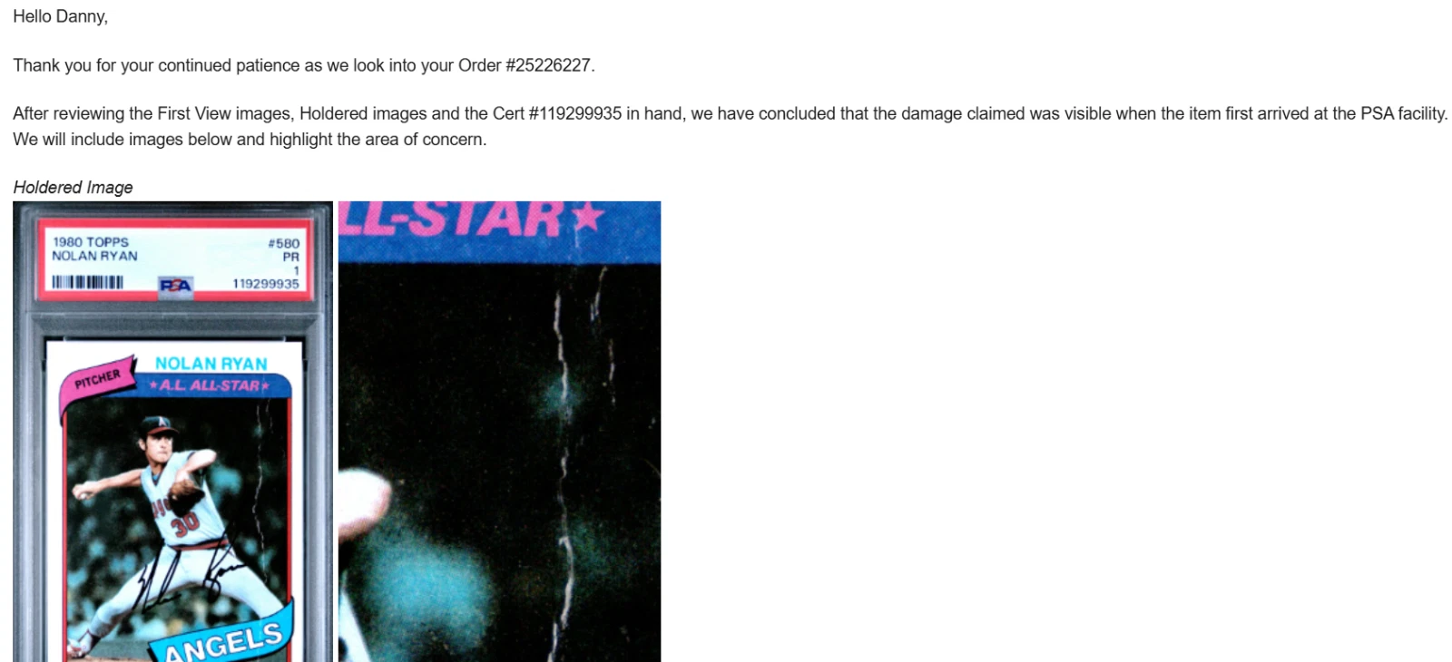 Frustrating I'm sure... as if you would've sent that card in with heavy creasing. I've had only positive experiences when PSA damaged my cards (which happens far too often). In each case, they've agreed and reimbursed me.