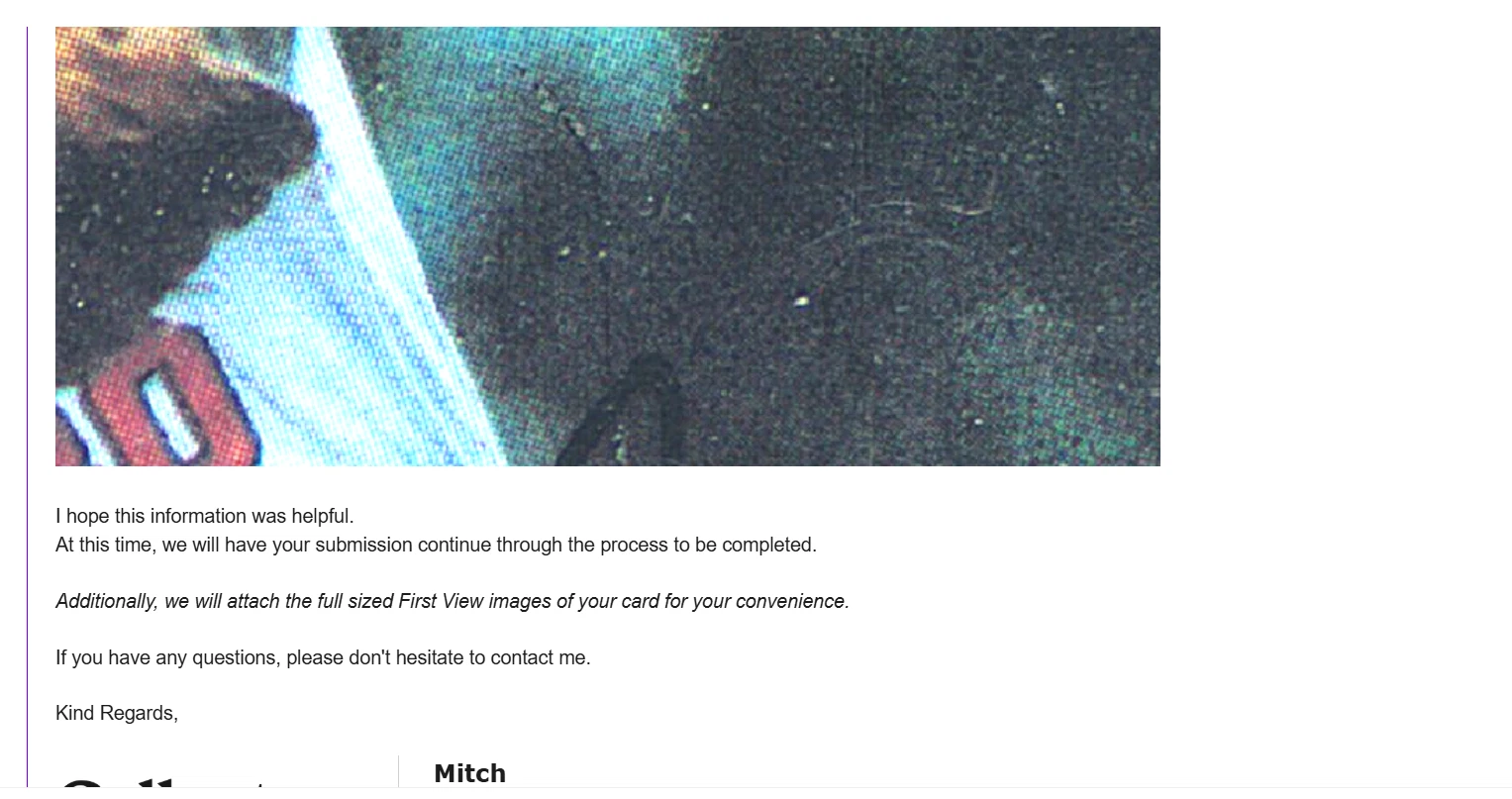 To be clear, creases often can be barely or totally imperceptible on a scan…vs very obvious in a pic in the reflected light or even another scan on different settings. So I don’t immediately discount things from a scan not showing it, even a large crease like that. But I’m also not saying OP can’t be right either. *If* the crease really wasn’t there…then I feel for OP and would blame PSA. Everything obviously hinges on whether it was there or not. A major takeaway for me, regardless of which it is above, is why does PSA use low such quality scans for intake where the ambiguity can cause these very issues. Either do high res scans or even better yet do a picture (or multiple) as well, which often shows crease damage better.
