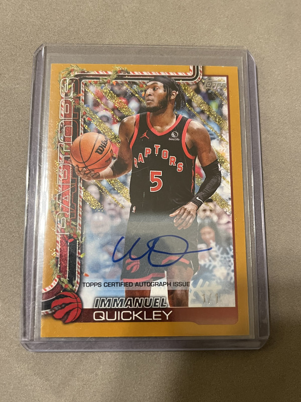 Nolan Traore RC Green Holly Stocking Stuffer Vanic Konan-Niederhauser RC Auto Edgecombe Variation Backs LBJ Blue Glitter Wemby Light Blue/Silver Glitters Cam Thomas Hidden Elf Zero Frostbite Zero #'d Numbered Relic wasn't a good name (maybe Myles Turner, I forgot) and was numbered to /199 or /299 As others have said, the silver glitters are almost all messed up with glitter on the backs, glitter on whatever card they were touching, dinged corners... Just, man, in a product without many actual "hits", having your pack hits be that mangled is rough. It wouldn't have killed Topps to make the SPs more interesting with Christmas elements or something. Cookie Backs are the most meh possible variation and green/red design elements on fronts are right behind. If they didn't reliably fall 3rd card from the bottom, they'd get glossed over frequently. Nothing about them jumps out. Not sure Cam Thomas warranted a Hidden Elf card. You don't rip Topps Holiday for anything other than the fun of the rip but there were some decisions that made it objectively less fun than the baseball iteration. Oh, and the collation... I have 2 Derik Queen base cards and 13 Cooper Flagg. 5 each of Dylan Harper and Edgecombe. |