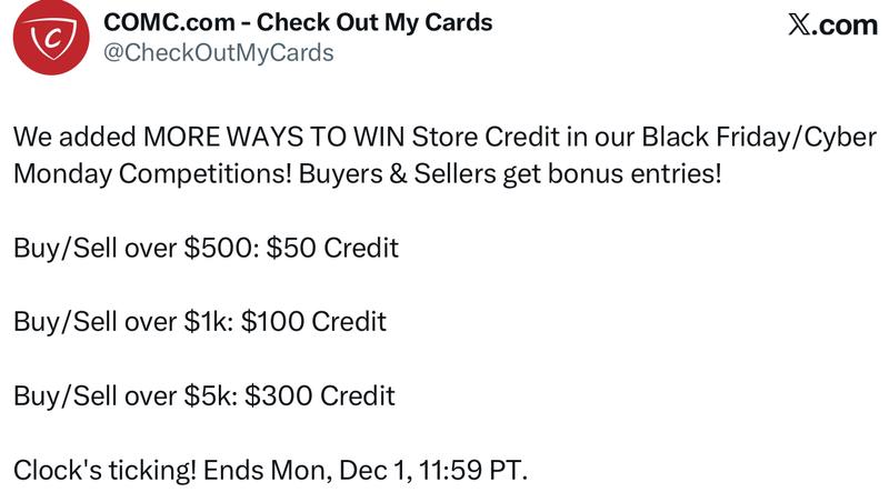You get at least one black friday Promo Mail and a bunch of pop-ups from COMC every day, but the one actually good benefit is only announced on twitter?