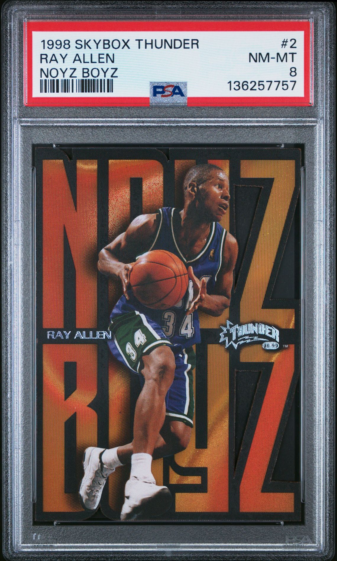 ![]() ![]() Grades for these popped today, 12/9, earlier than I expected. Thought this Ray Allen might get a 9, but I didn't notice the surface defect on the O in Boyz before I submitted it. ![]() ![]() I expected this grade. Bottom front edge was rough.