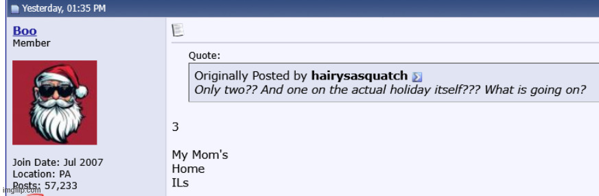 | Off Topic This section may contain threads that are NSFW. This section is given a bit of leeway on some of the rules and so you may see some mild language and even some risqué images. Please no threads about race, religion, politics, or sexual orientation. Please no self promotion, sign up, or fundraising threads. |
