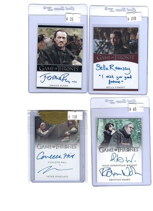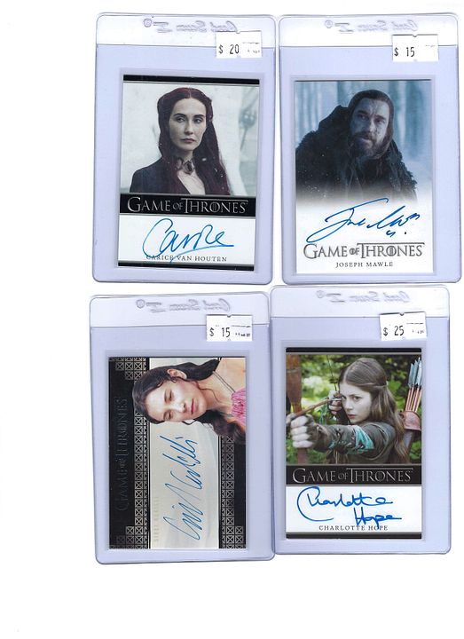 Charlotte hope - 25$ Carice Van Houten - 20$ Indira Varma - 20$ Iain Glen - 35$ Jessica Henwick - 15$ Sibel Kekelli - 20$ Would u do 160 shipped on these?