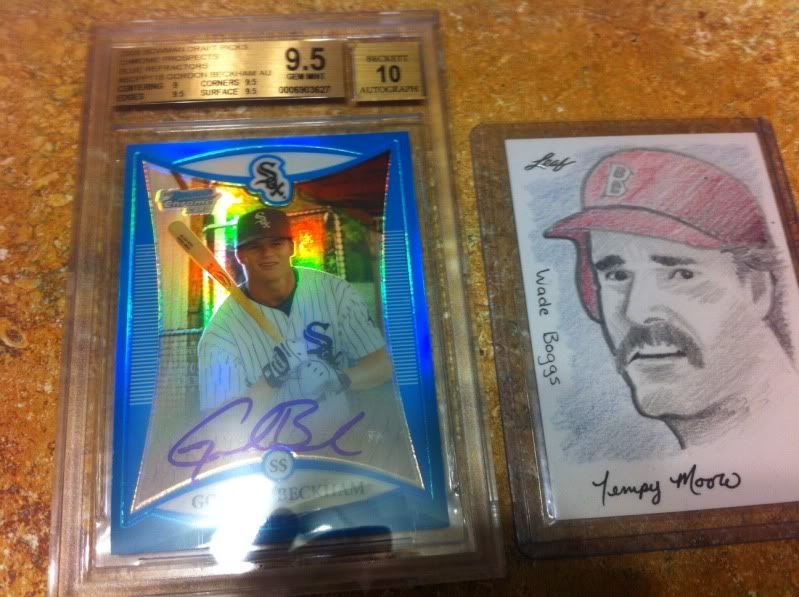 ![]() 2008 Bowman Draft G Beckham blue auto BGS 9.5/10 auto Wade Boggs sketch card 1/1 (T Moore) As Tiffany once said..."Could've been so beautiful, could've been so right." LOL! Oh well. NFS right now. Gonna hold on for a while.