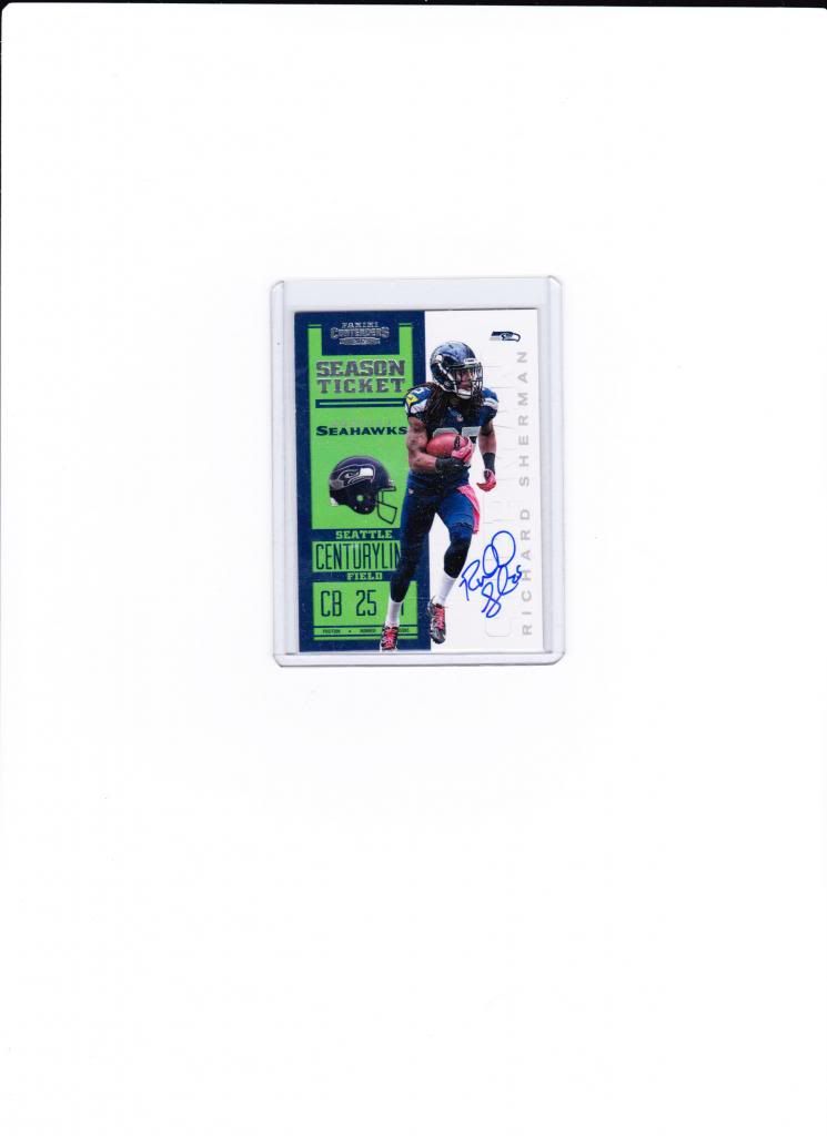 As a Seahawks fan, it has been a pain in the butt trying to find a Sherm auto. There is a local shop in WA where RS signed Contenders and has the Sherman hologram logo. I heard he ended up signing 500 or so for Panini. Great pull
