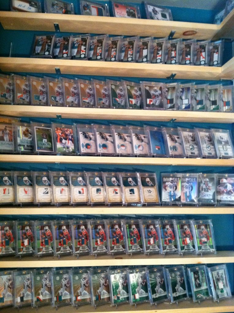 ![]() ![]() This is just the beginning, I am going to be framing my newly completed Demaryius Thomas rainbow, and adding some other shelving. I saw a guy on here, I think he may have been "phinzphan" or something, he had a GREAT display.