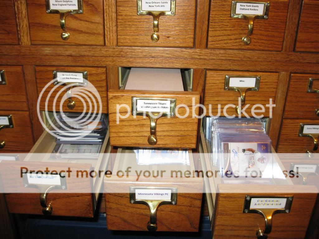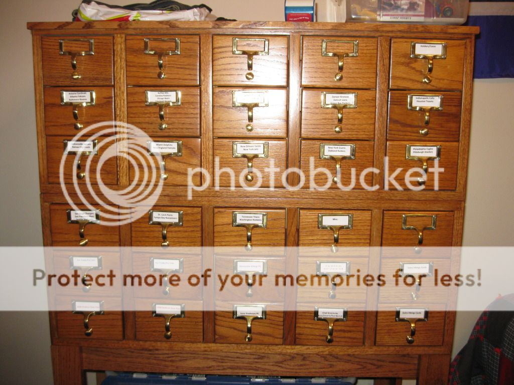 This is how I do it. Me and my dad refinished a library card catalog, works awesome, they fit 800ct boxes. Almost like it was made for storing cards...which it was. lol