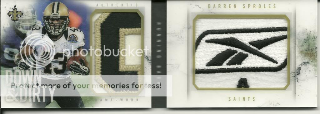 Those are some sweet booklets. Very nice. I like the Peyton Manning Nike patch and Darren Sproles Reebok patch.