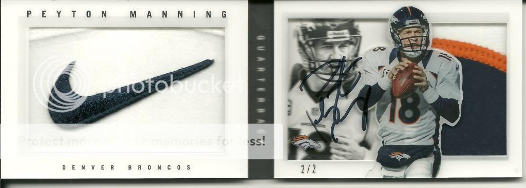 That 2 of 2 manning I have up there is really a 1 of 1 because I got it personally autographed when I met him. I just have to get it PSA/DNA. I don't want to get it Beckett graded because they put it sealed in a case I don't like since I have a lot of booklets. PSA puts an invisible mark on the card and give you a certificate which is better for me since I like the magnetic cases.