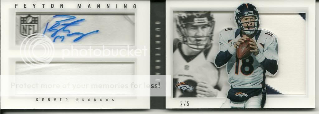 Peyton Manning 2 of 2 Personal Auto ![]() Peyton Manning 2/5 Auto ![]() Russell Wilson Five Star Auto 9/42 ![]() Darren Sproles 1/2 Down & Dirty ![]() Robert Turbin Five Star Auto 6/42 ![]() 49ers Chronicle 4/5