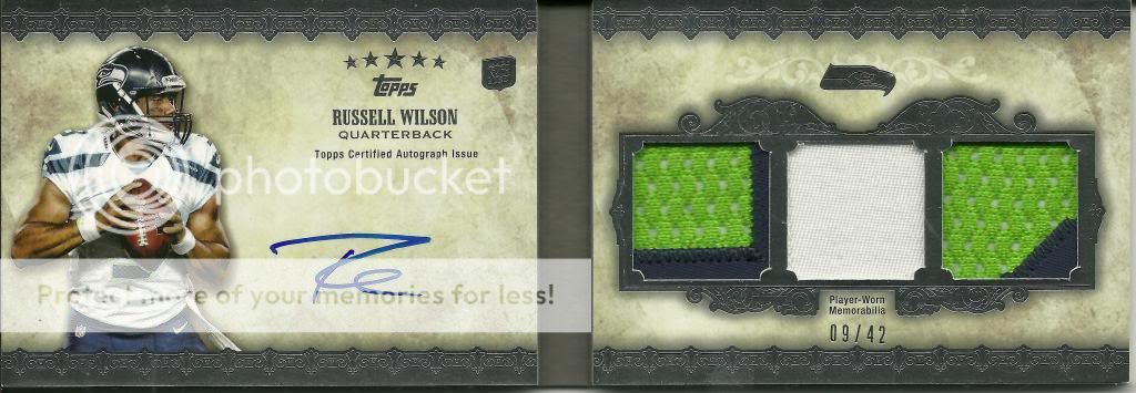 The reason I was about to get a lot of stuff was because in a span of 2 months I spent about 20k on football stuff. I know its crazy, but once you open wax you can't stop lol. I am also a Russell Wilson collector, just started, I mostly have like Peyton, Russell, Brady, Booklets and 1 of 1s, but I have some 1 of 1s I want to get rid of. I have a Richard Sherman 1 of 1 strata printing plate that I would like to trade for a nice manning auto if anyone is interested.