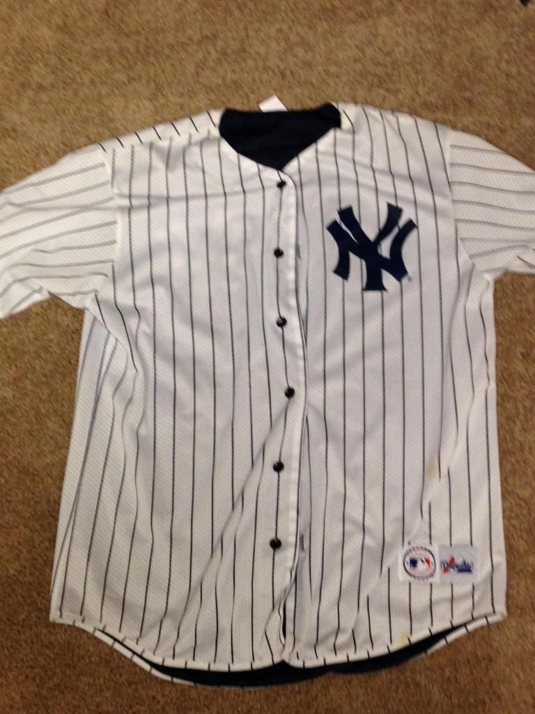 First pick-up is an XL Yankees reversible Majestic Jersey. There needs to be some minor cleaning done. ![]() ![]() Next is a Large Green Nike Air Wind Breaker. This too needs a little minor cleaning. ![]() ![]() Now for my third item. I totally took a shot in the dark on this one, but I am hoping to get a nice return on it. The "hanger" tag and the back tag both are coming partially off, but would be easy fixes. ![]() ![]()