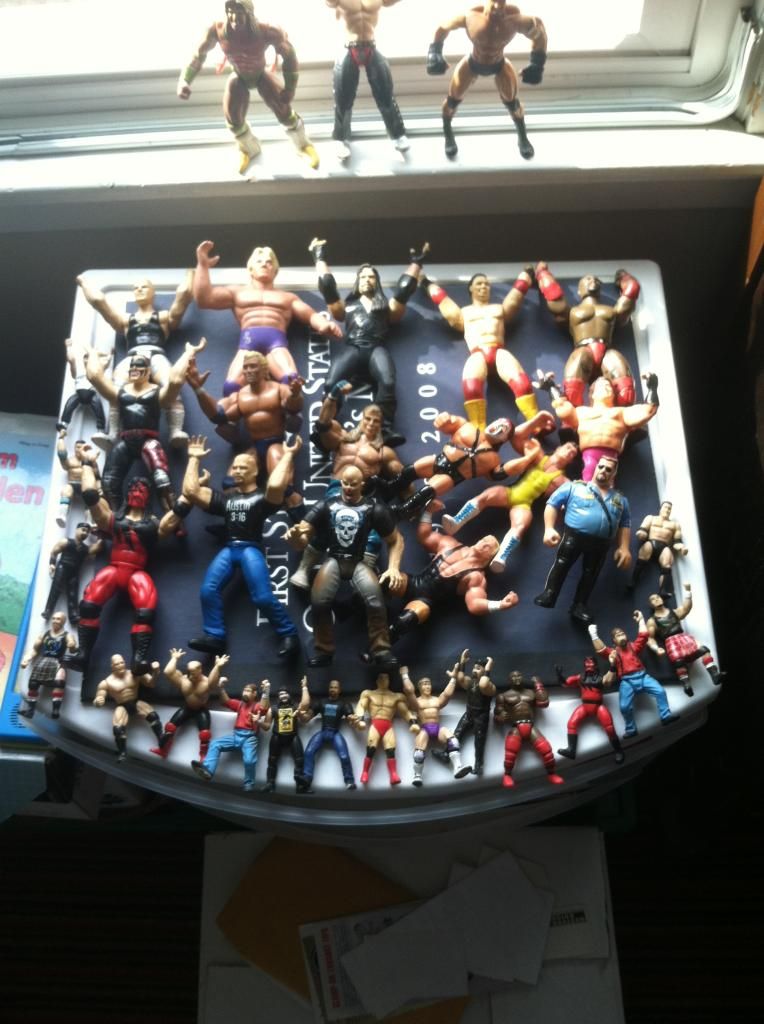 I have a lot of Jackks figs unopened in package. Thing is they have been in tubs in my parents garage for 15 years or whatever it is. I know I have some two packs, maximum sweats, Val Venis, commissioner michaels. But I doubt the cards are anywhere near mint. Probably warped, for sure not flat. It's gets over 100 degrees here in the summer multiplied by 15 summers LOL. If poor to fair cards are ok with you let me know and I will find them this week. PM for twitter pic would be faster.
