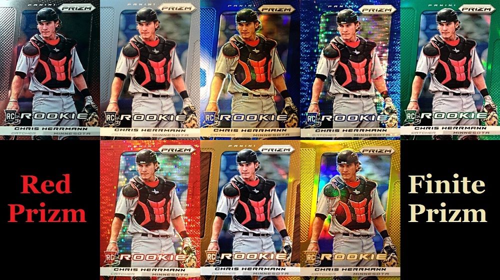Ok, well that's good to know! Any idea how scarce they are? That's the first one I've seen, I believe. I'm working on Chris Herrmann's rainbow from the set, and I have just the red prizm and the finite 1/1 to go, and at this rate I'm not sure which I will find first!