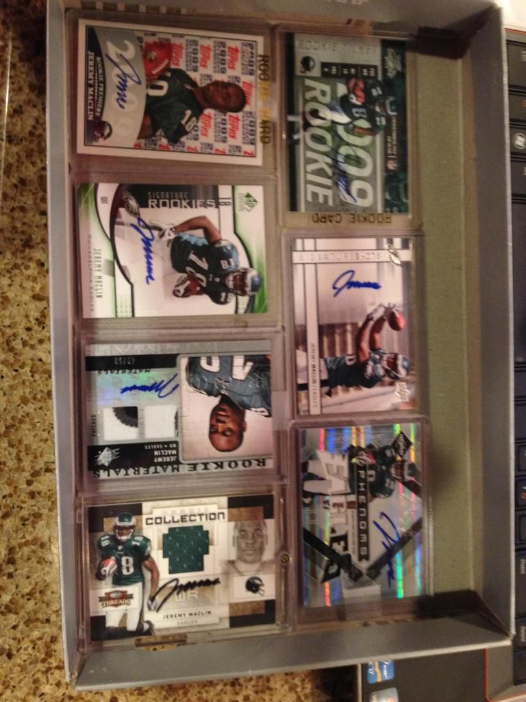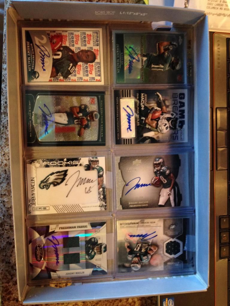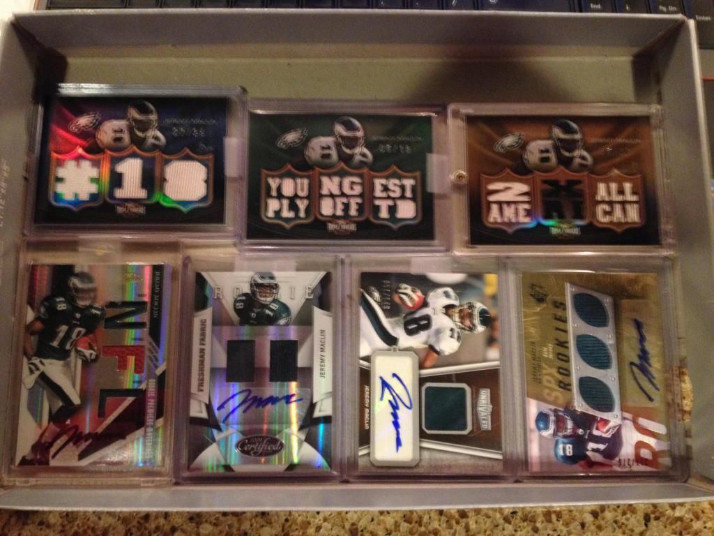 I am looking to sell this Jeremy Maclin lot for $100 delivered. First PMs gets first dibs. Second Lot is SOLD. Auto's- 2009 UD Exquisite #/75, 2009 Topps Rookie Premiere, 2009 Topps Unique Game Breakers #/100, 2009 Topps Chrome, 2009 Bowman Chrome Auto Patch's- 2009 Absolute star gazing #/25, 2009 R&S eagle head patch #/141, 2012 Bowman inside the numbers, 2009 Freshman Fabric #/249, 2009 SPX #/275 Patch's- 2009 Gridiron Gear #/250, 2009 Gridiron Gear (big patch 4 colors) #/25, 2009 Certified FOTG dual patch Maclin and McCoy #/100 ![]() ![]() First Lot is SOLD Auto's- 2009 Contenders Rookie Ticket, 2009 Topps Rookie Premiere, 2009 SP Signature Rookies, 2009 UD Signature Shots Auto Patch's- 2009 SPX Rookie Materials #/50, 2009 Limited Phenoms #/149, 2009 Donruss Threads Rookie Collection #/50, 2009 Absolute RPM #/199, 2009 SPX Rookies #/275, 2009 Certified Freshman Fabric #/249, 2010 Unrivaled 51/149 Patch's- 2010 TTT (#18) #/36, 2010 TTT (youngestplyofftd) #/18, 2010 TTT (2xAllAmerican) #/27 ![]()